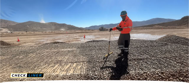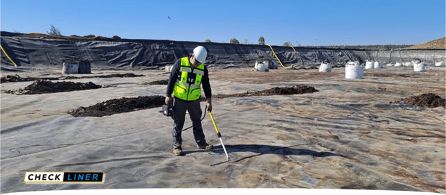 Inspección de fugas y daños en geosintéticos cubiertos por ejemplo bajo mineral, solución ácida, canales de lixiviación, repertorios de agua, rellenos sanitarios.