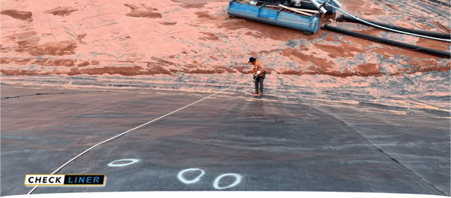 Inspección de fugas y daños en geosintéticos expuestos por ejemplo HDPE, Bituminosa, Asfáltica, pintura poliuretano, pintura epóxica expuesta, con gravilla, etc.