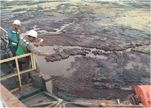 Inspección de fugas y daños en geosintéticos expuestos por ejemplo HDPE, Bituminosa, Asfáltica, pintura poliuretano, pintura epóxica expuesta, con gravilla, etc.